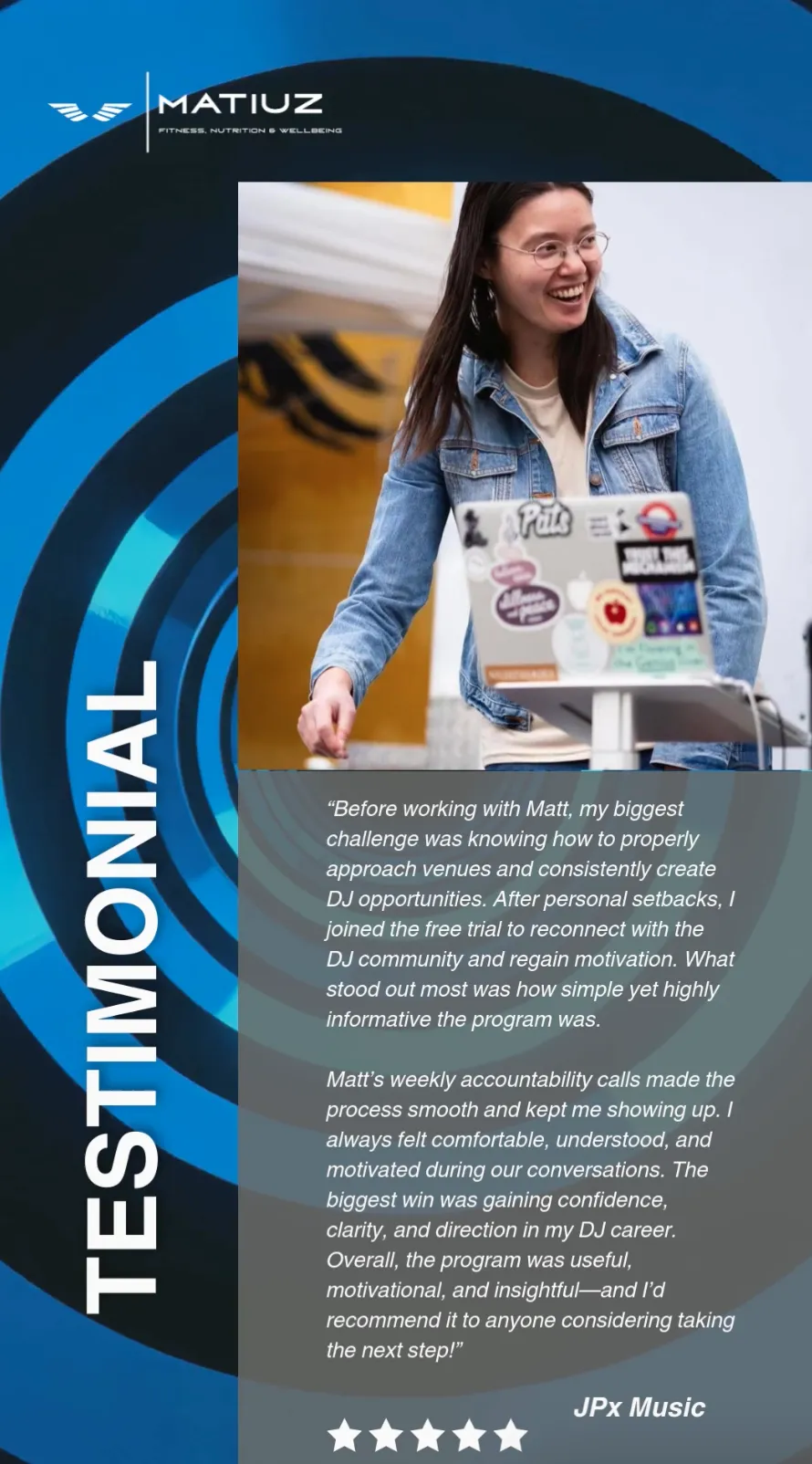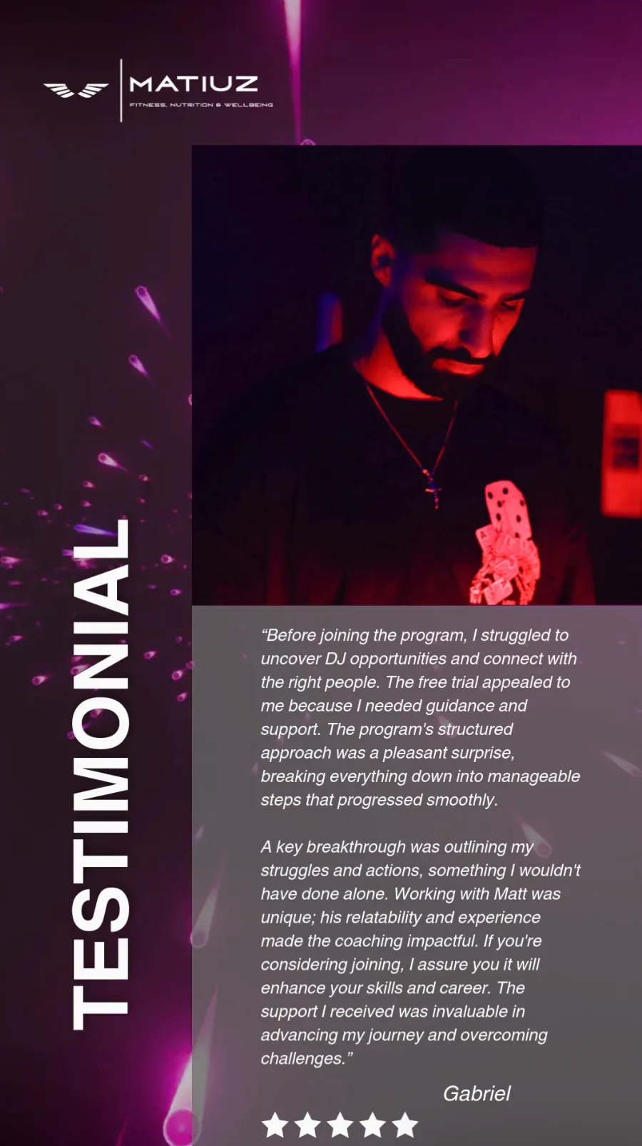 Masterminds with Matiuz. Best suited for touring or full time DJs, wanting to tour the world with Matiuz on DJ and Fitness Retreats. Everything in Bronze & Silver included!